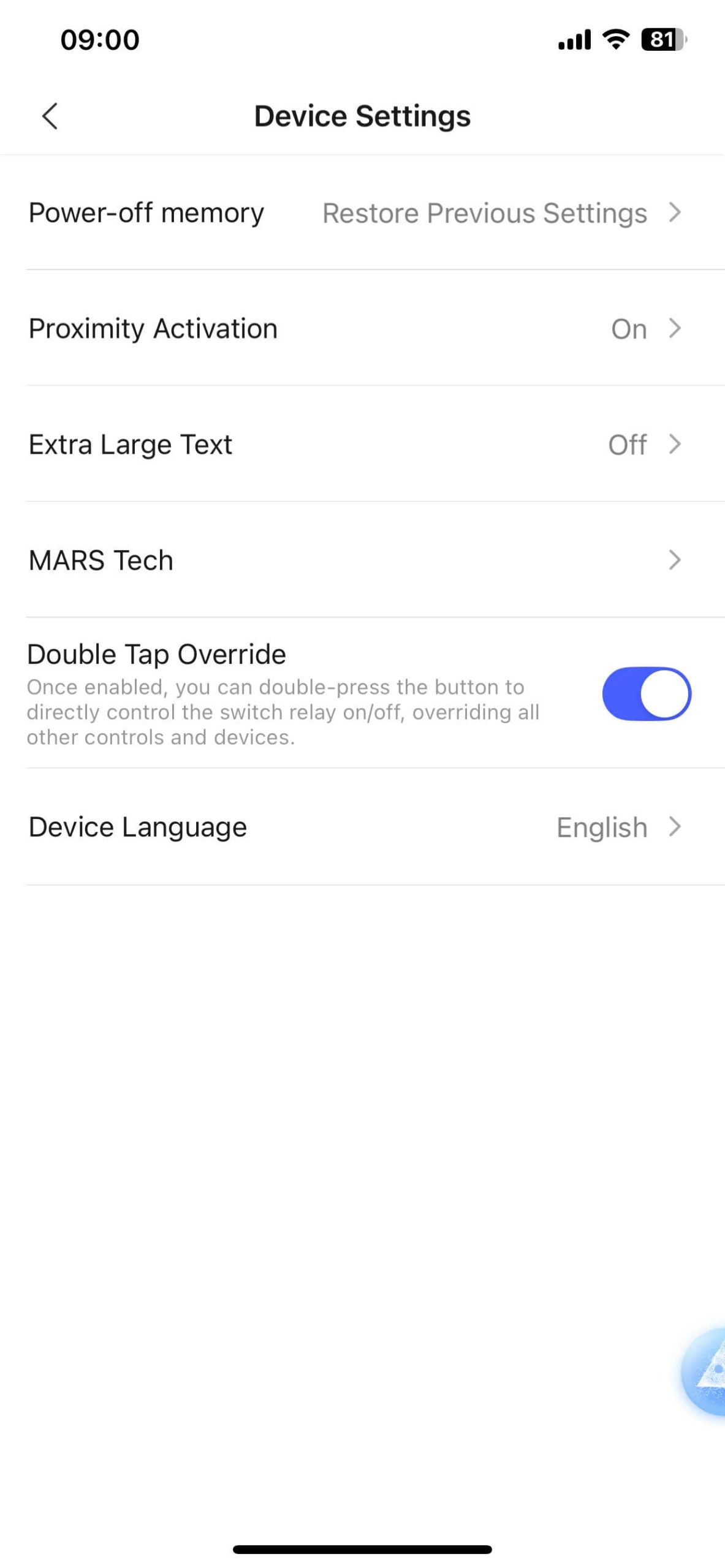 **Double Tap Override (Ghi đè thao tác nhấn đúp): Cho phép bạn gán chức năng riêng cho thao tác nhấn hai lần liên tiếp. Ví dụ: nhấn 1 lần để bật đèn, nhấn đúp để mở rèm. Tùy chỉnh được trong phần cài đặt.