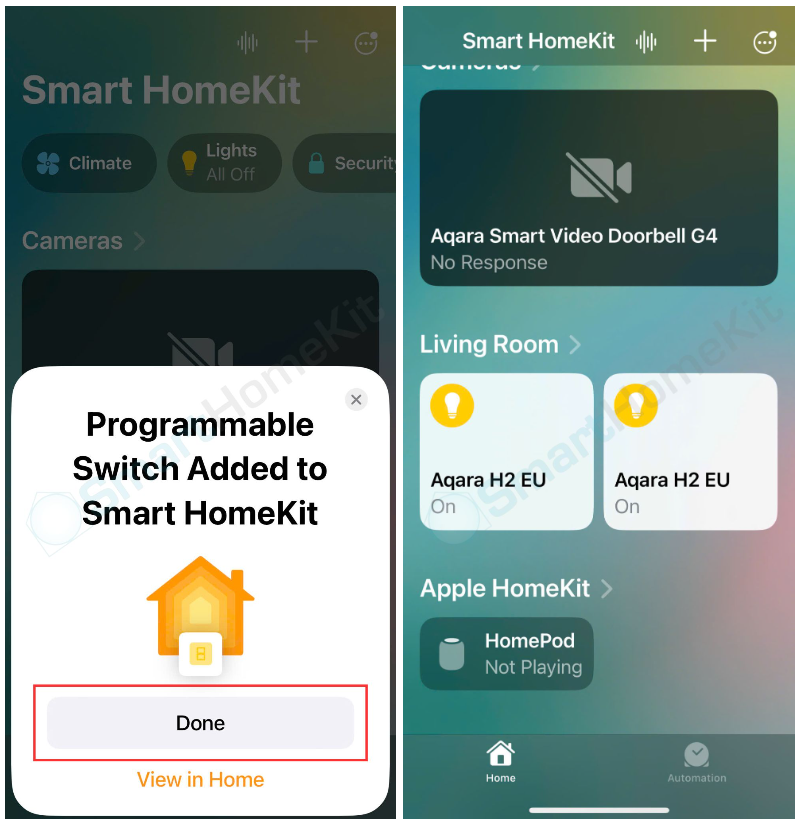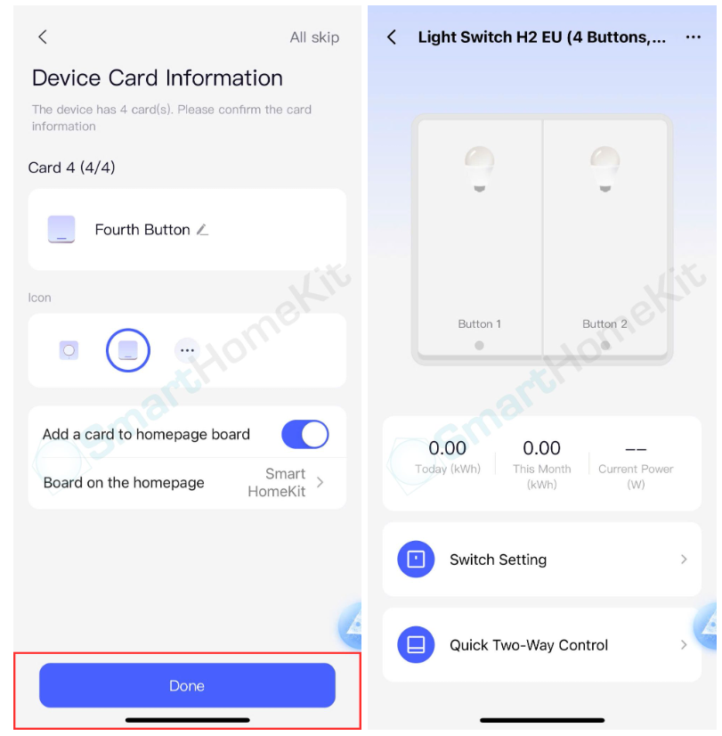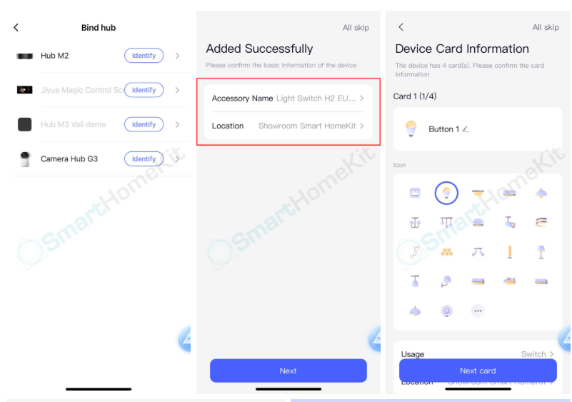 Bước 4: Khi chọn Zigbee, bạn chọn Hub Aqara bạn muốn kết nối với công tắc H2 EU -> Đặt tên và chọn vị trí trong nhà -> Thiết lập các thẻ tên nút nhấn và chọn biểu tượng hợp lý -> Cuối cùng chọn Done để hoàn tất thiết lập và trải nghiệm sản phẩm.