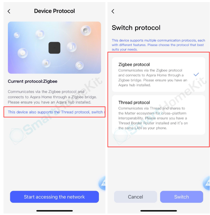 Lưu ý: Sử dụng sóng Thread trong Aqara cần phải có Hub M3 hoặc G5.