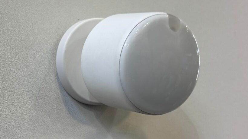Cảm biến vẫn sử dụng tông trắng cơ bản, phía trên cùng là đèn LED báo hiệu cùng giá đỡ cảm biến linh hoạt để có thể xoay ra nhiều vị trí khác nhau trong căn nhà. Đầu cảm biến lớn để nó có thể phát hiện chuyển động hoặc nhiệt độ. Đi kèm là phụ kiện bao gồm ốc vít, giá hít nam châm.