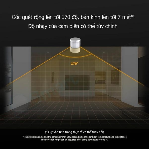 Với góc nhìn rộng 170° và phạm vi phát hiện lên tới 7m khi được kết nối với Aqara Home bằng PIR Tech. Nếu kết hợp với chân đế 360 độ linh hoạt, nó cho phép dễ dàng điều chỉnh góc nhìn, đảm bảo chỉ phát hiện chuyển động ở những khu vực quan tâm cụ thể.
