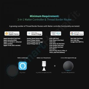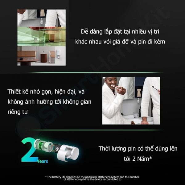 Với PIR có độ chính xác cao tích hợp, ngay cả những chuyển động nhỏ cũng có thể được phát hiện. Hỗ trợ tích hợp với HomeKit, Google Assistance, Samsung SmartThings, v.v. thông qua Matter, cho phép ứng dụng rộng hơn trong các tình huống bảo mật.