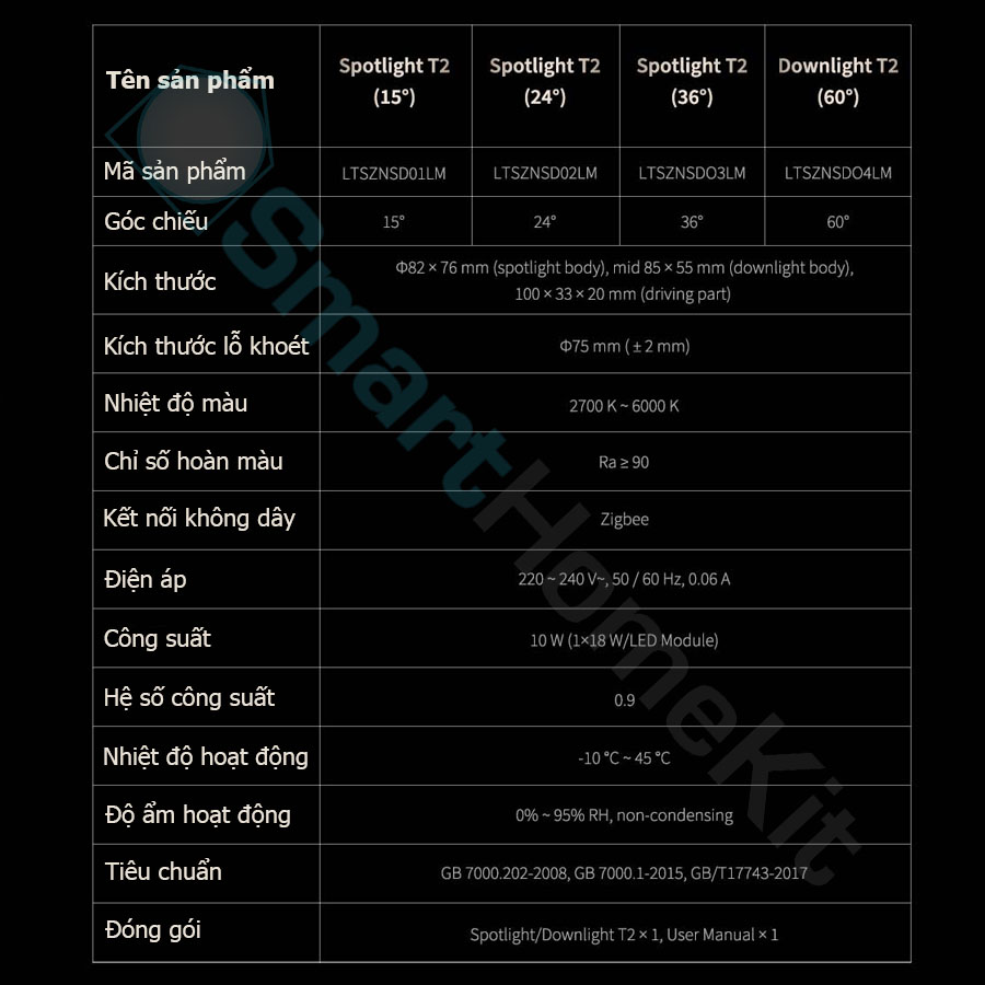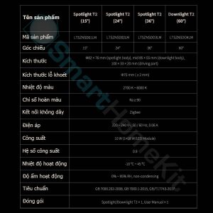 Thông Số Kỹ Thuật Chính Đèn Downlight Aqara T2 Pro