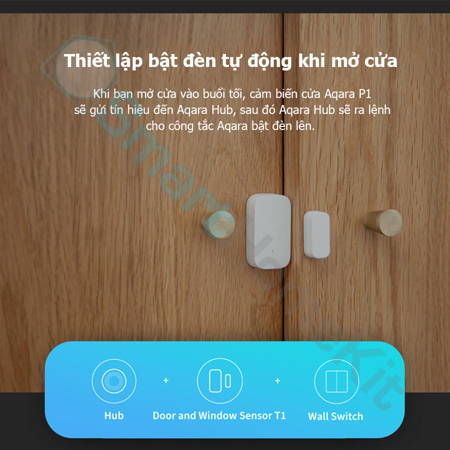 - Aqara Home Automations: Bạn có thể kích hoạt các cảnh và hoạt động tự động hóa khác nhau bằng bộ sản phẩm nhà thông minh của Aqara Home. Ví dụ: khi bạn mở cửa vào buổi tối, Cảm biến cửa và cửa sổ Aqara T1 sẽ gửi tín hiệu đến Công tắc trên tường Aqara để bật đèn. Dù bạn có về nhà muộn thế nào thì đèn cũng sẽ tự động bật.