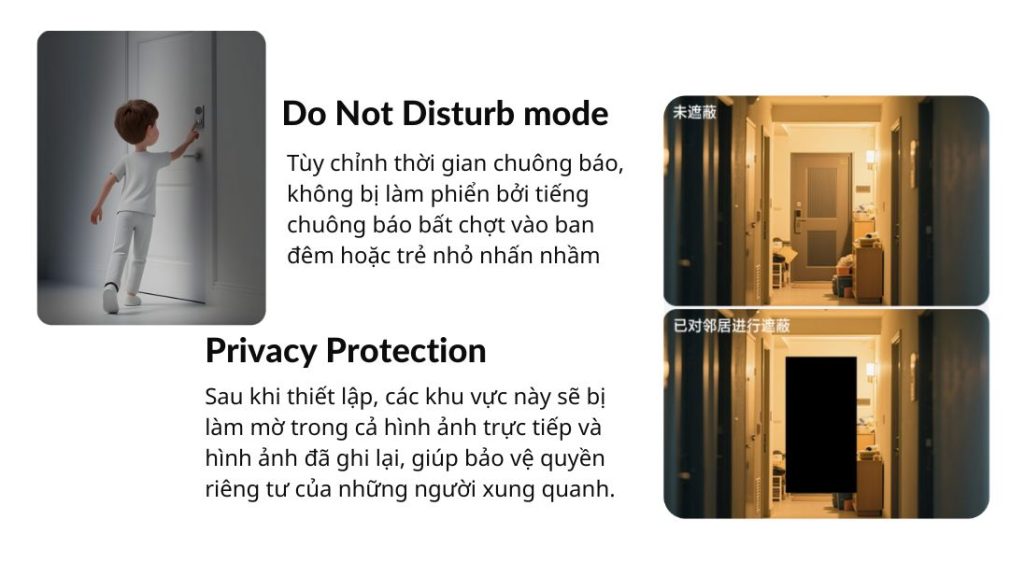 Camera thông minh của cả 2 có thể thiết lập chế độ bảo vệ quyền riêng tư cho tối đa ba khu vực cụ thể trong tầm nhìn của camera. Sau khi thiết lập, các khu vực này sẽ bị làm mờ trong cả hình ảnh trực tiếp và hình ảnh đã ghi lại, giúp bảo vệ quyền riêng tư của những người xung quanh.