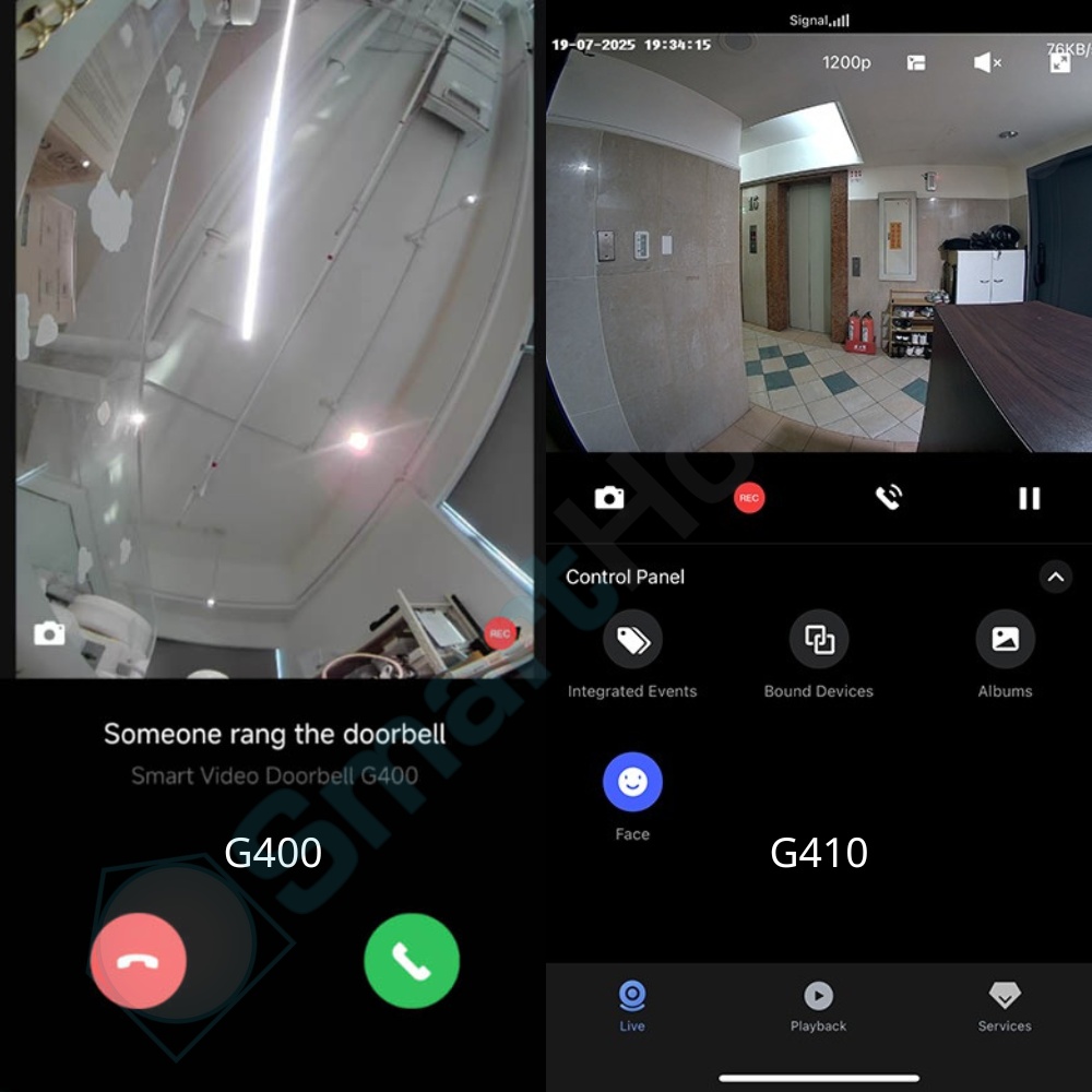 Khi có người bấm chuông cửa G400, ứng dụng trên điện thoại sẽ nhận được cuộc gọi thoại, và người dùng có thể chọn kết nối hoặc kết thúc cuộc gọi. Còn với G410 thì sẽ hiển thị thông báo có người nhấn chuông, bạn có thể tích hợp tạo thêm các tự động hoá cho riêng mình nhằm mang đến nhiều trải nghiệm hơn.