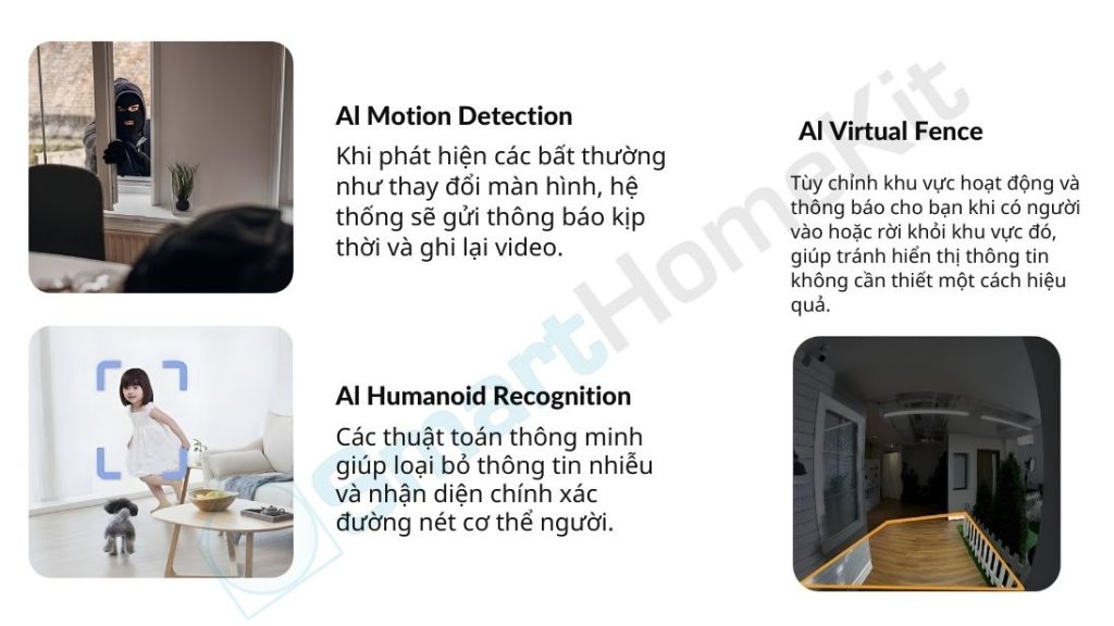 Hệ thống AI hoạt động phối hợp giữa xử lý ngay trên camera và AI đám mây giúp kết quả chính xác hơn, hạn chế tình trạng gửi thông báo không cần thiết. Bạn chỉ nhận được cảnh báo khi có sự kiện thực sự quan trọng trước cửa nhà — ví dụ như người lạ xuất hiện, gói hàng được đặt hay một vật thể lớn đi qua. Điều này giúp người dùng không bị “spam” thông báo và dễ dàng tập trung vào các tình huống cần xử lý hơn.