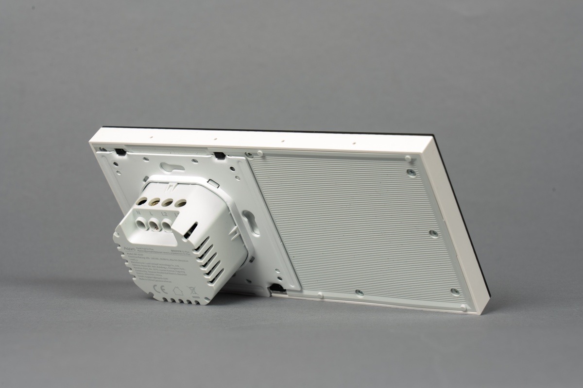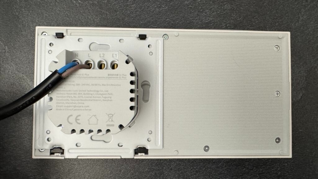 Màn hình trung tâm Aqara S1 Plus có kích thước tương đương với 2 công tắc vuông nhỏ (172 x 86mm) và vẫn lắp vừa 1 đế âm hình vuông giống công tắc 3 nút có dây nguội.